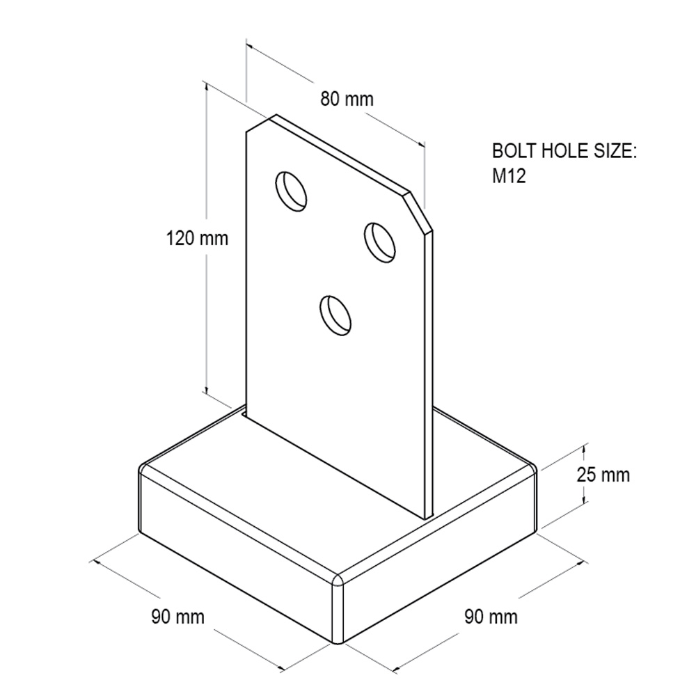 | Product Code(s) | Metal Thickness | Fits Post Size | Bolt/Fixing Size | Box Qty |